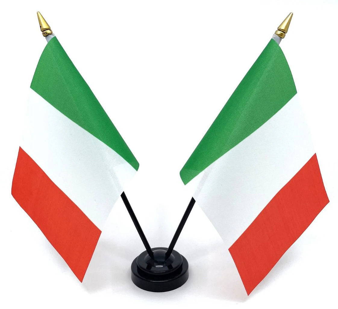 Sada stolních vlajek “ITÁLIE” s černo/zlatým stožárem.